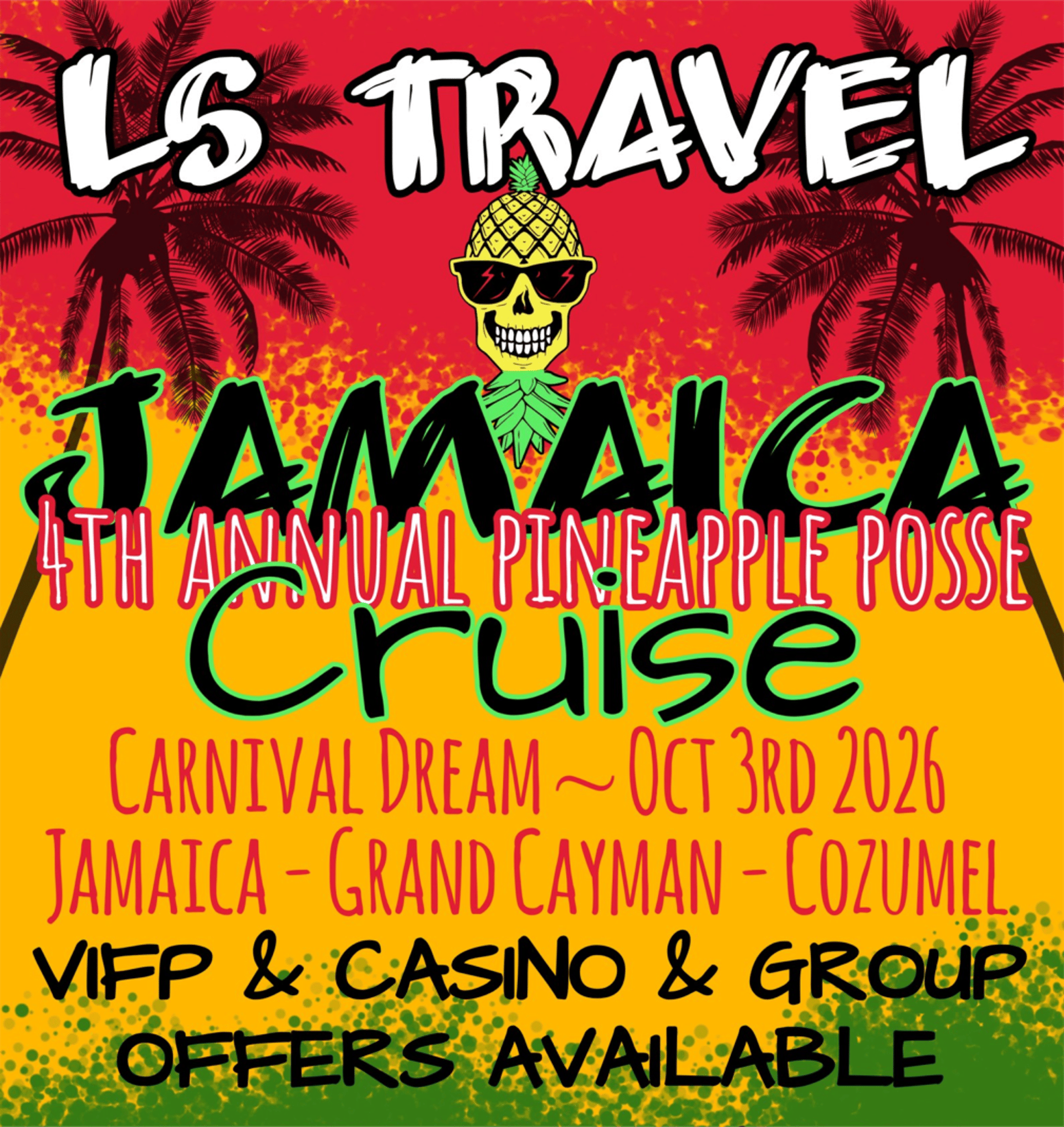Join us for our 4th Annual Pineapple Posse Cruise aboard the Carnival Dream, departing Galveston on October 3, 2026.